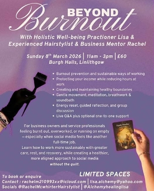 Sunday 8 March, 11am - 3pm. With Holistic Well-being Practitioner Lisa and experienced Hairstylist and Business Mentor Rachel.
